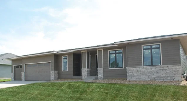 Perched on one of the highest points in Waterloo, this custom design remixes neo-Prairie for urban lifestyle. The large front columns anchor the strong lines of the wide-lap siding and limestone. As you proceed through the inviting foyer, the space opens with coved ceilings in the loft-like living and dining area. The dark, glassy hardwood flooring throughout adds gravity to the horizontal emphasis.